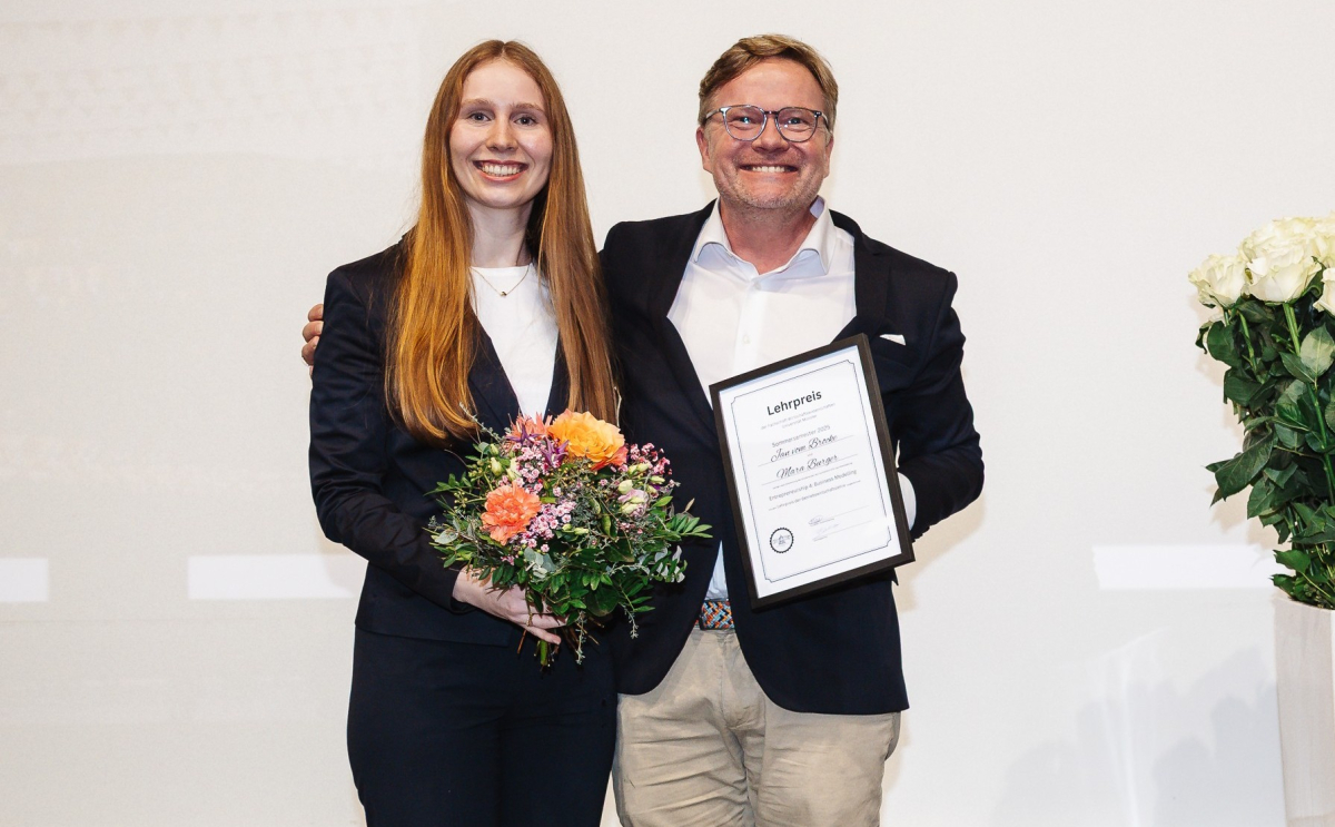 Teaching Award for Master's in Information Systems: Prize Winner Mara Burger and Prof. Jan vom Brocke.